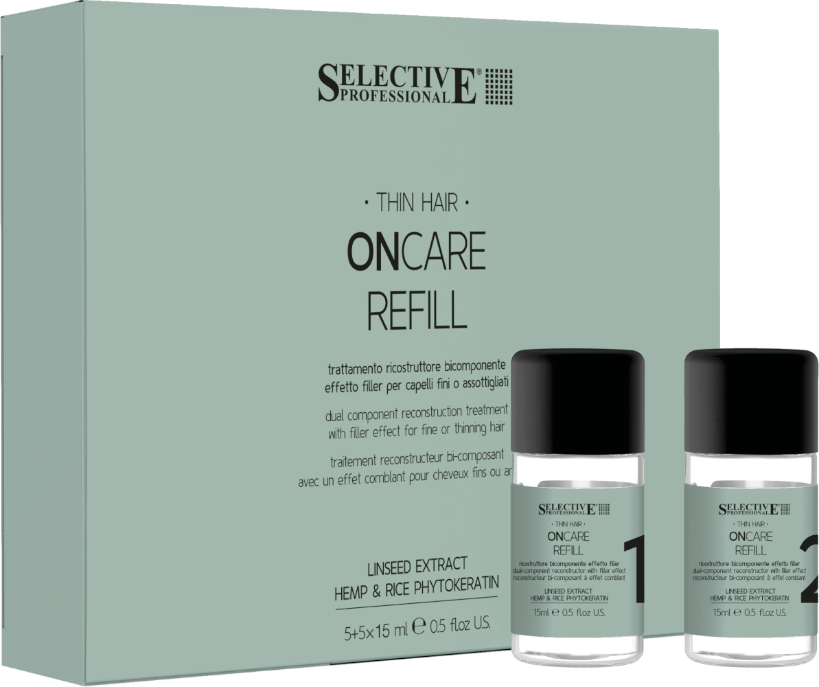 Das ONCARE Refill Treatment ist eine innovative 2-Komponenten-Behandlung, die speziell für feines und strapaziertes Haar entwickelt wurde. Es wirkt wie eine intensive "Anti-Aging"-Kur, die das Haar von innen auffüllt, stärkt und sichtbar aufbaut. Ideal für alle, die ihrem Haar sofort sichtbare Fülle und Volumen verleihen möchten.